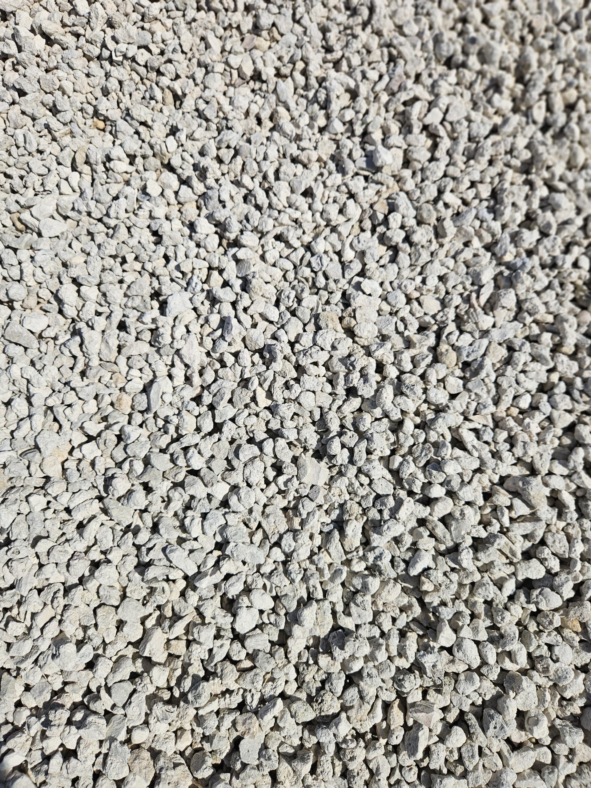 #89 Limestone is a crushed, angular limestone aggregate sized at approximately $3/8”$ (‘clean’).